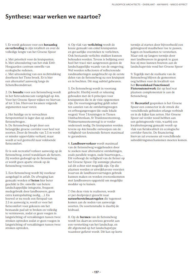 In kader van het strategisch project onverGETElijk werd door de verschillende betrokken partners een toekomstvisie voor het Groene Spoor uitgewerkt. De ambitie is om fietsverplaatsingen vlotter en veiliger te maken door de kruisingen her in te richten en gedeeld ruimtegebruik te optimaliseren voor fietsers, wandelaars en landbouwvervoer.